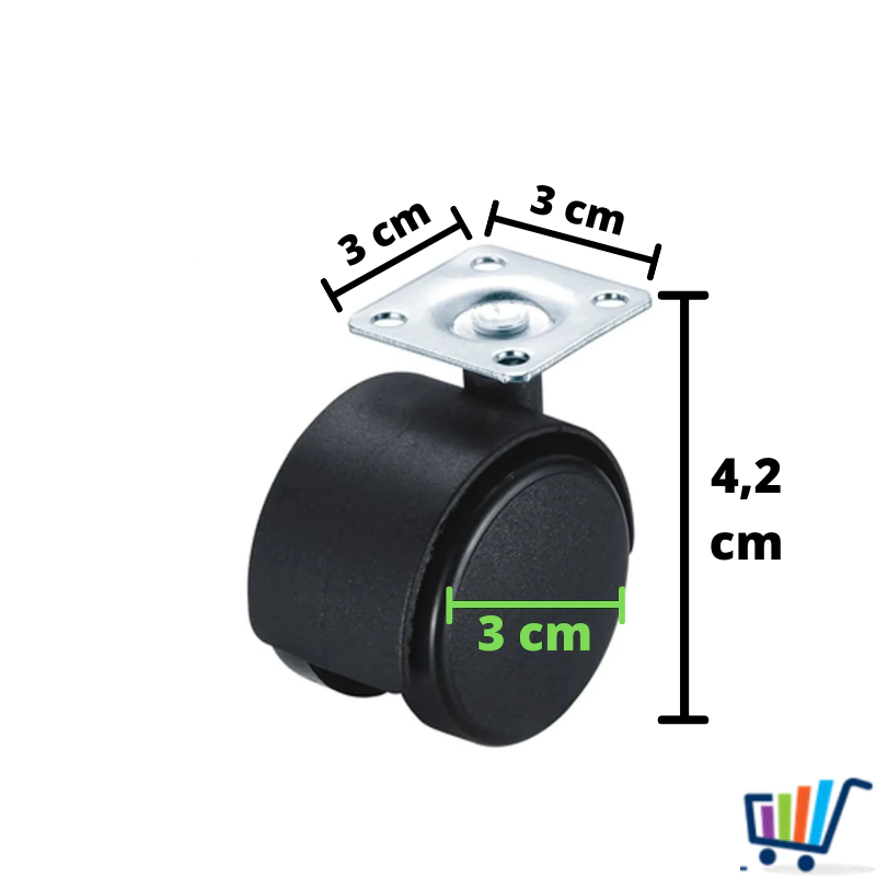 Rodinha possui 30 mm diâmetro, com chapa 30 x 30 mm.
